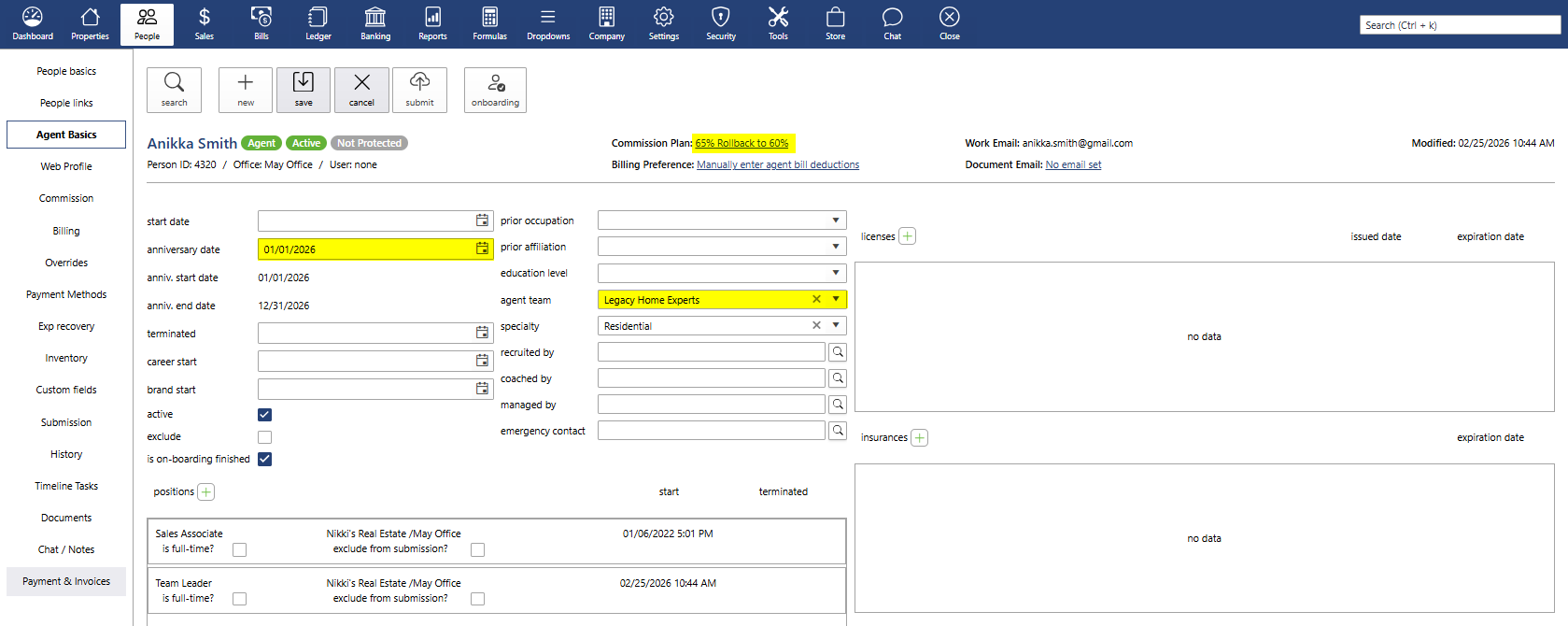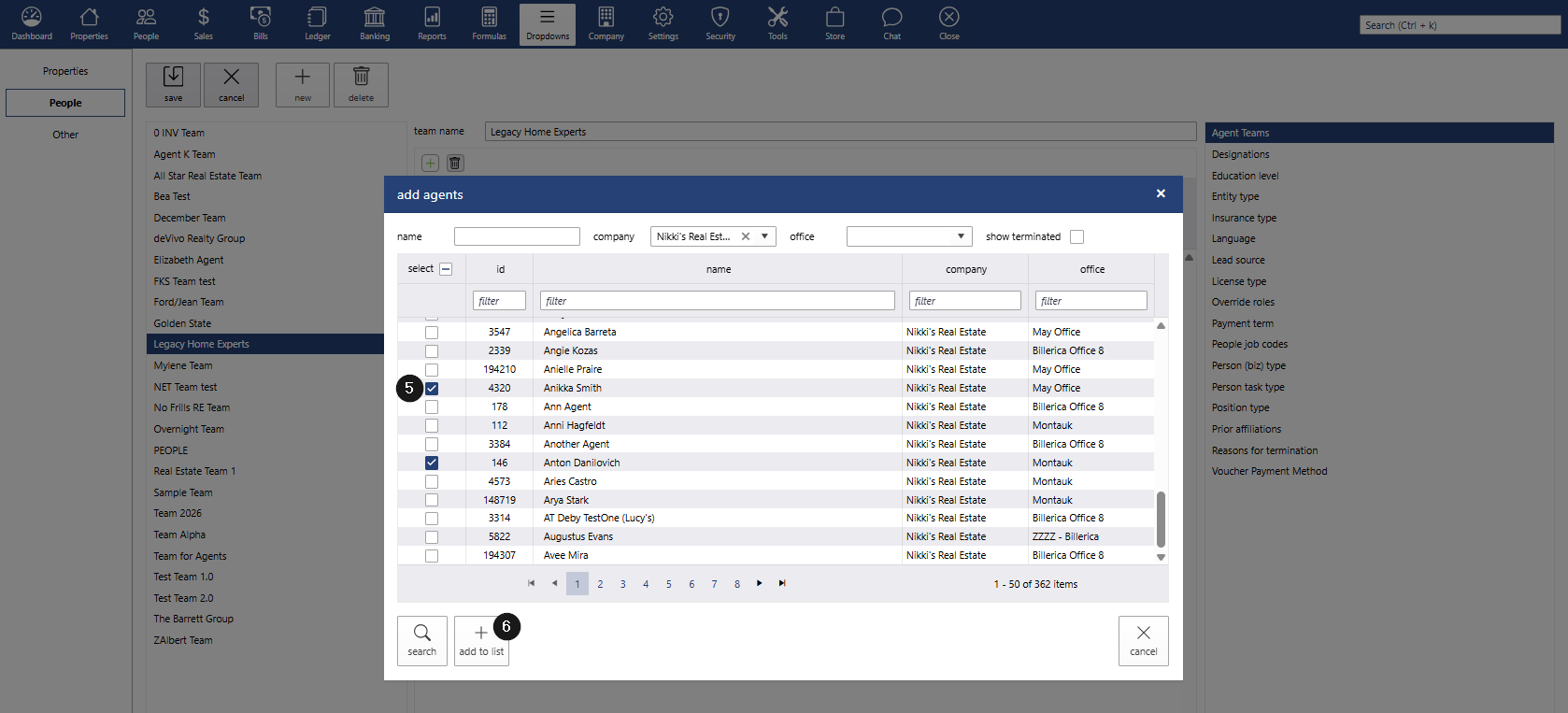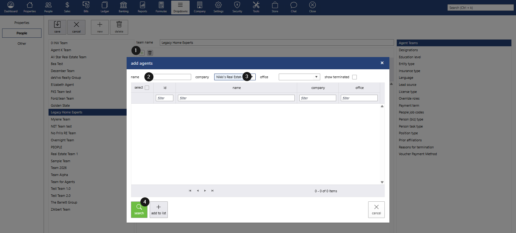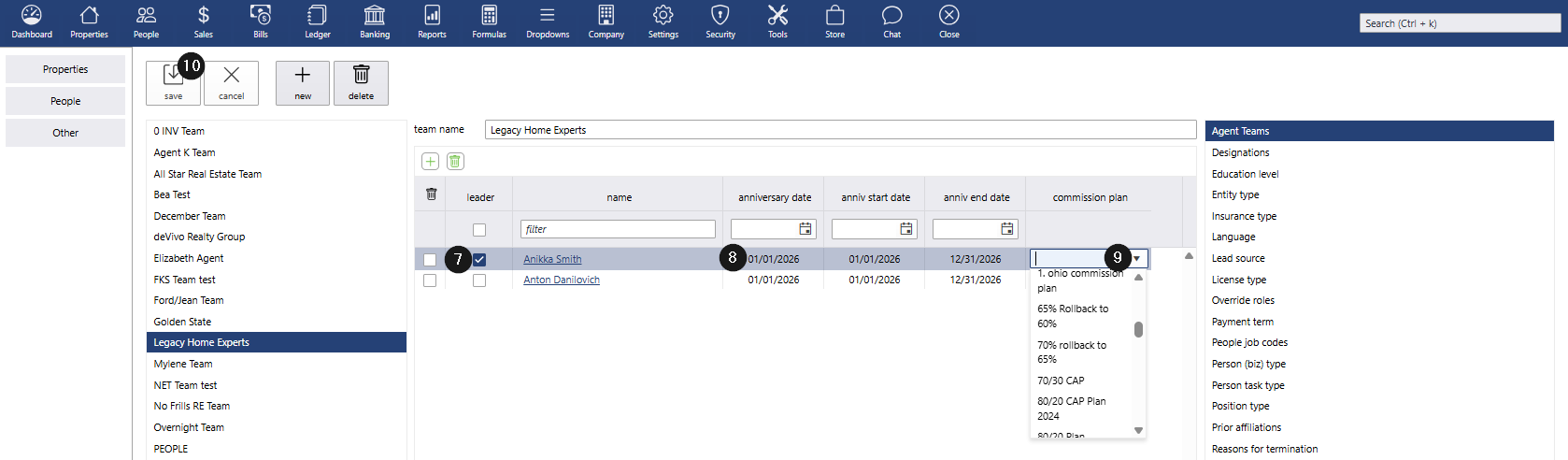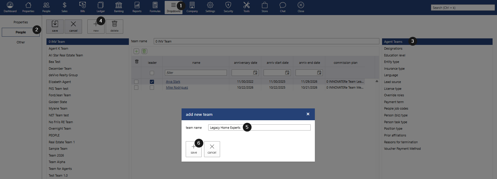 Once saved, the information entered under Dropdowns > People > Agent Teams will automatically populate in the agents’ profiles.