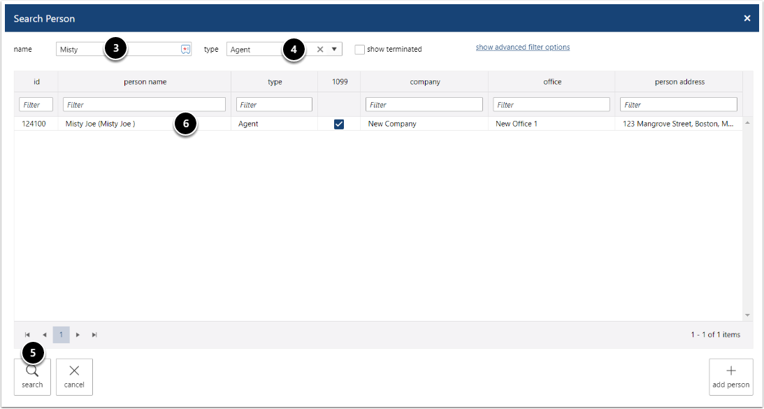 - Select Agent from the drop-down list to limit People types in the search results