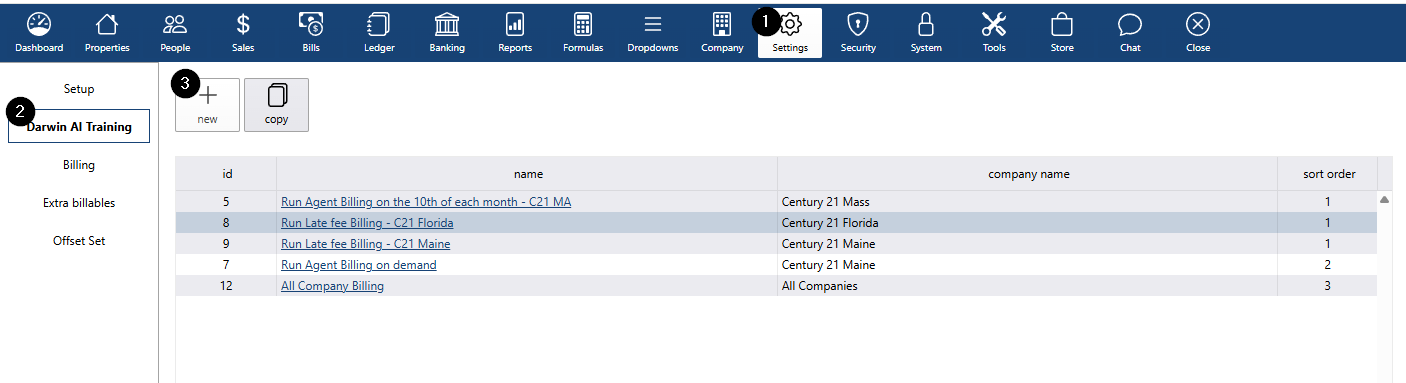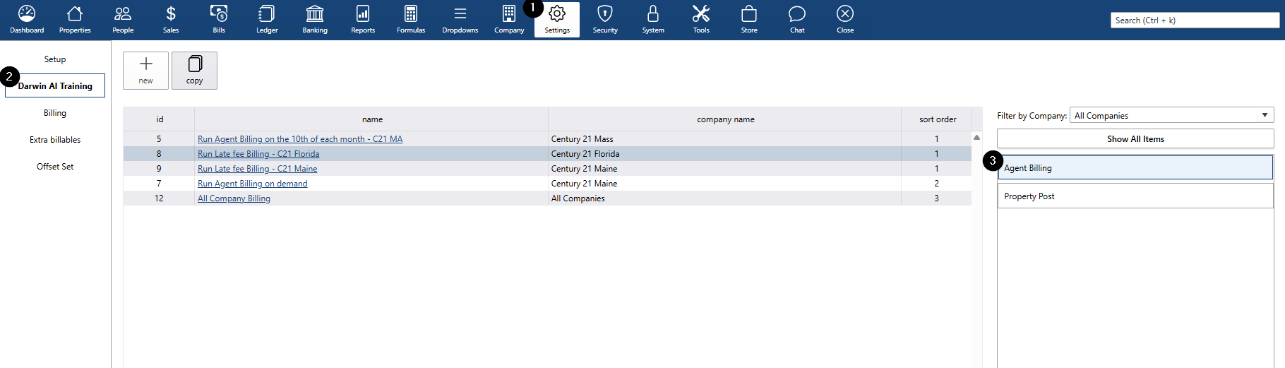 View all automated billing processes under Settings > Darwin AI Training > Agent Billing.