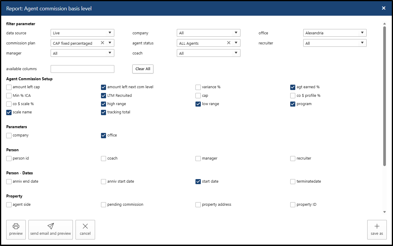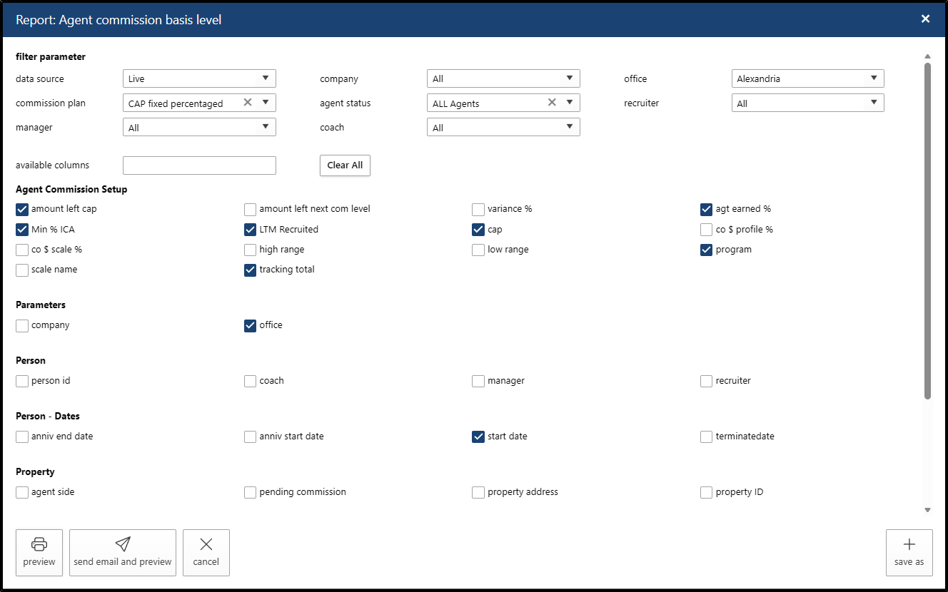 - Amount Left Cap: Remaining balance before the agent hits their CAP.