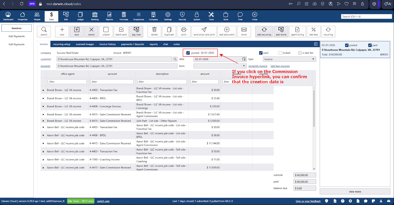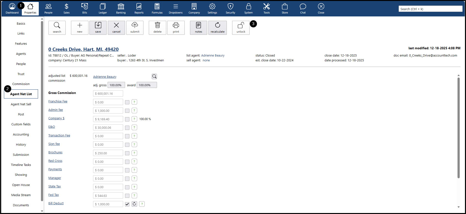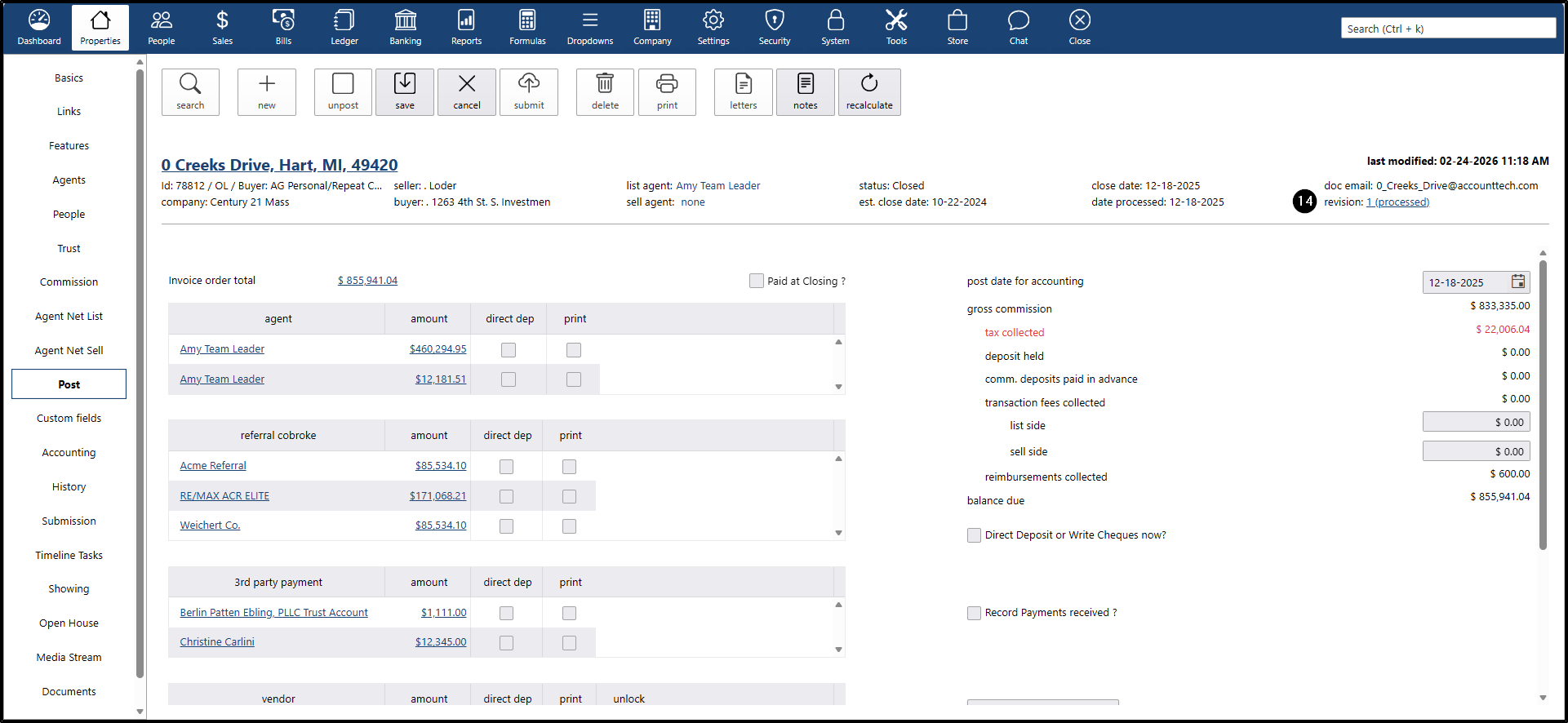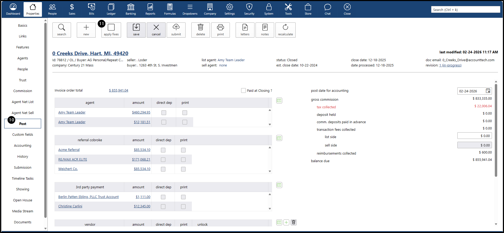 - To verify that the date is correct when closing a property, go to:
