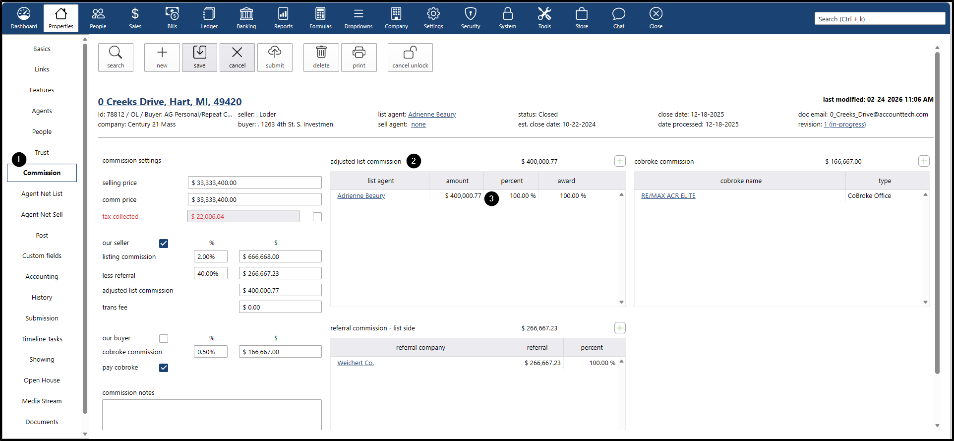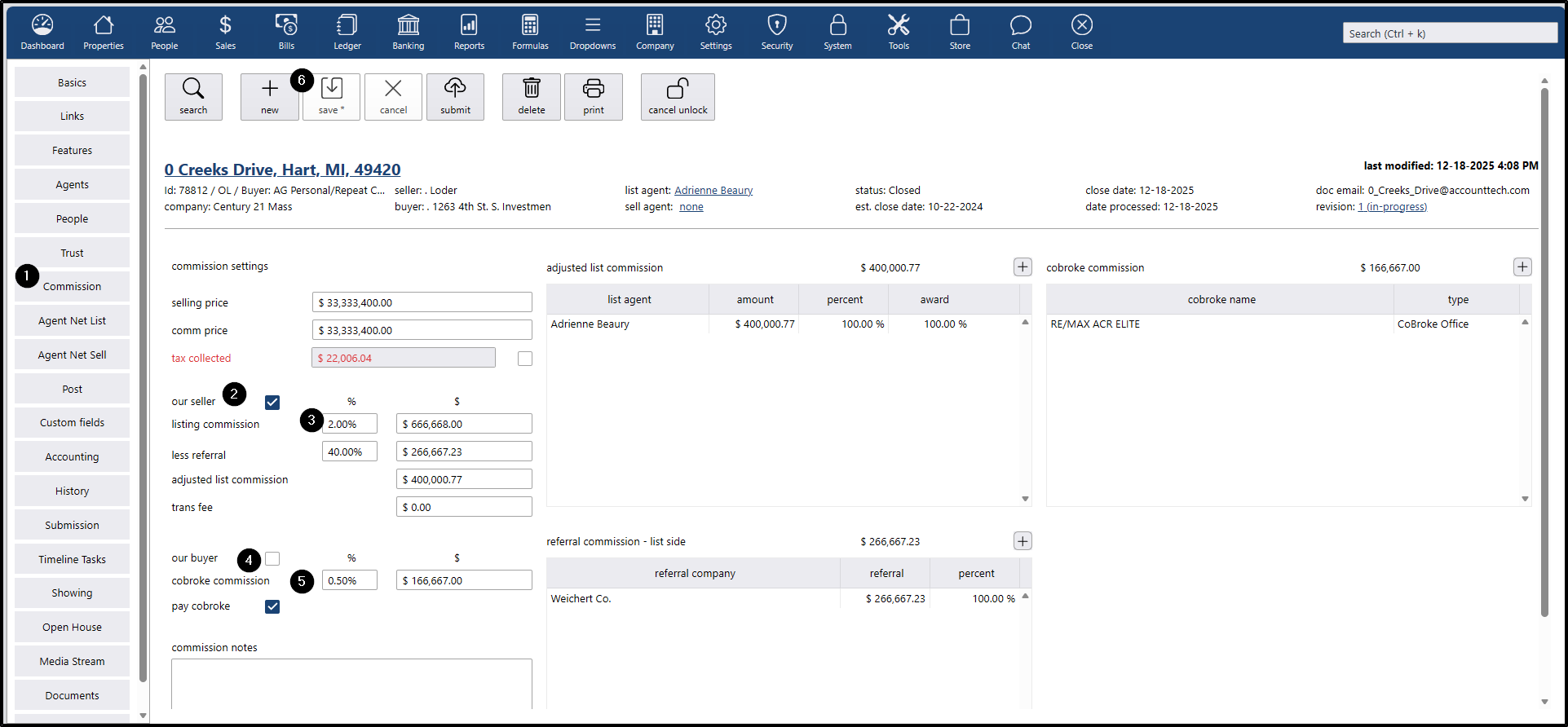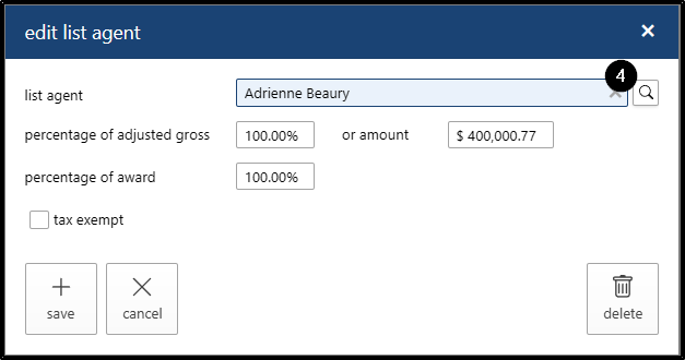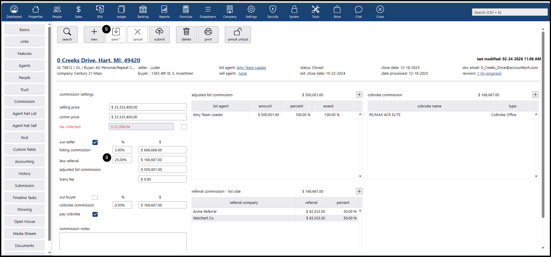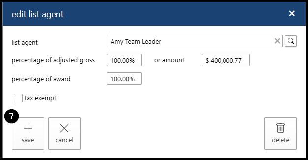 - If you want to change the commission percentage for the listing agent