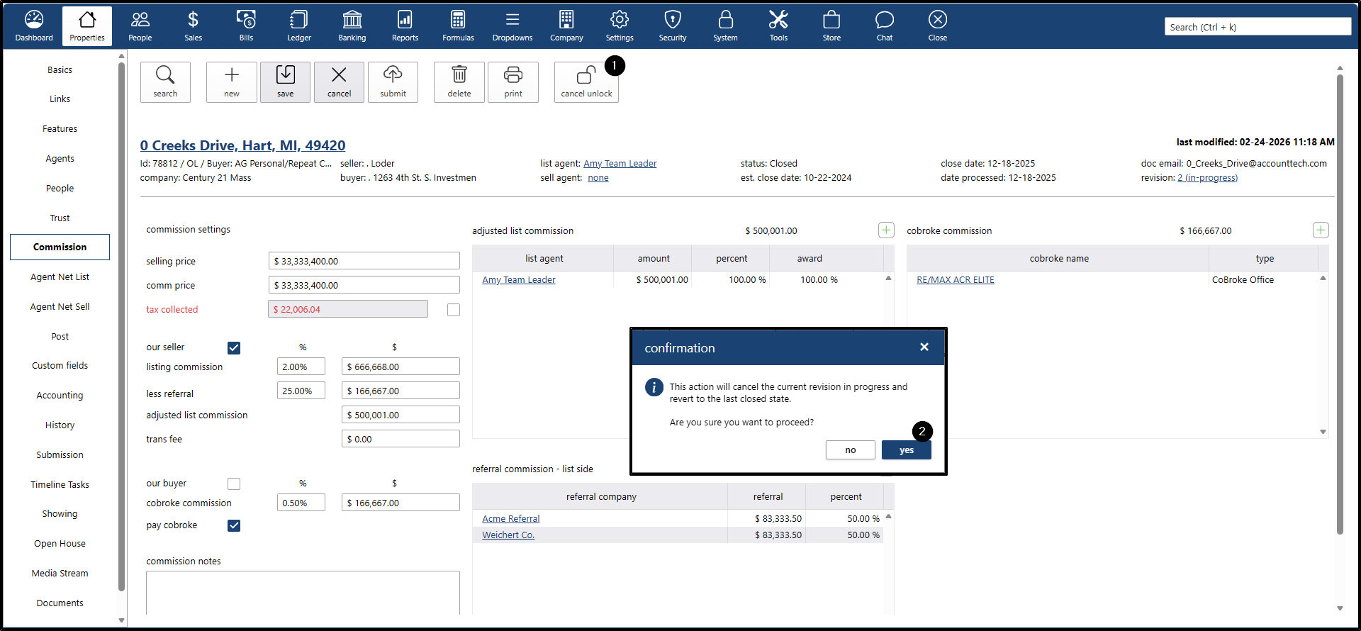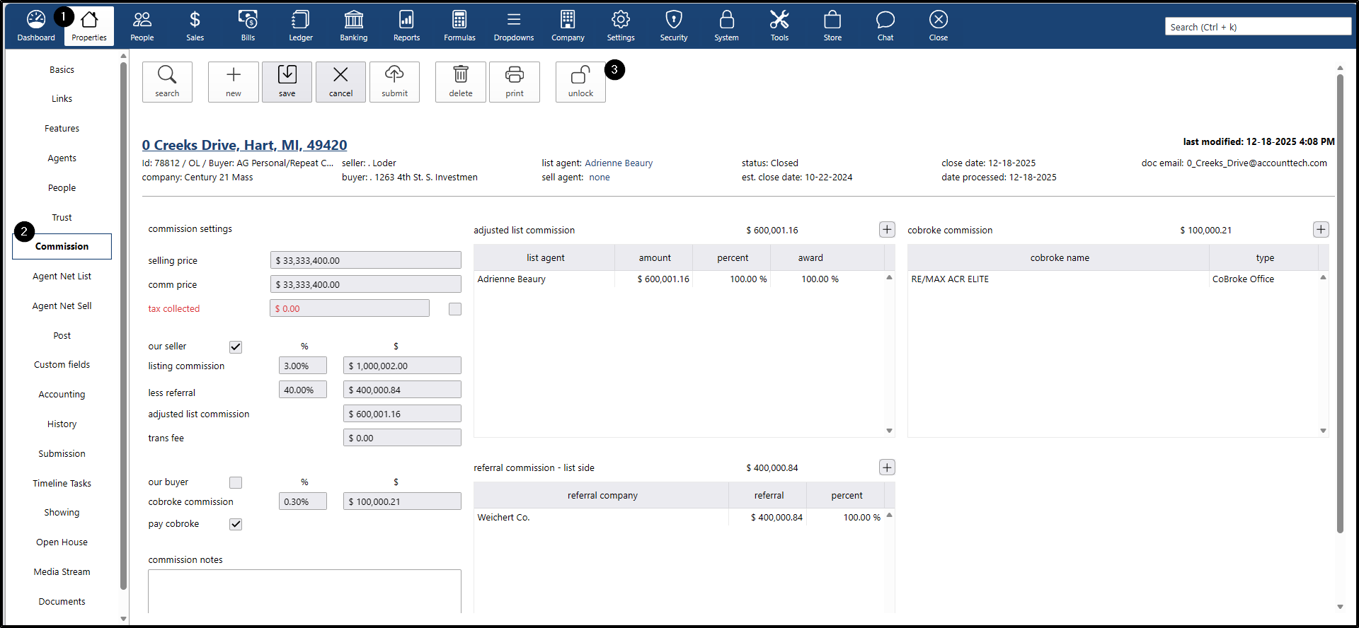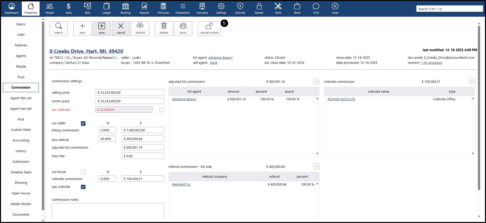 - If you want to change the commission percentage for the listing agent