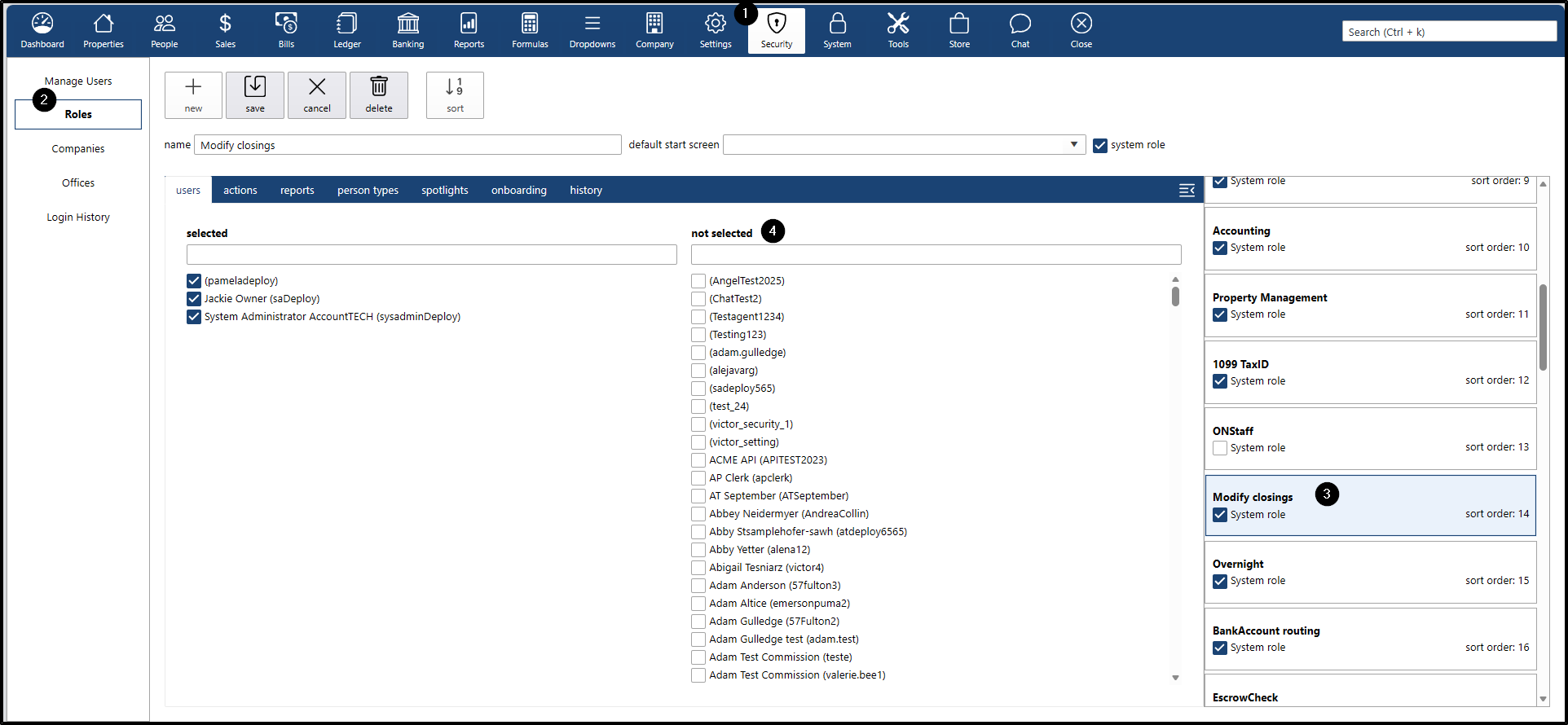 - On the right side, all roles will be listed. Find the “Modify closings” role.