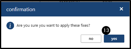 A confirmation message will appear; click Yes to apply the fix. The system will process the fix.