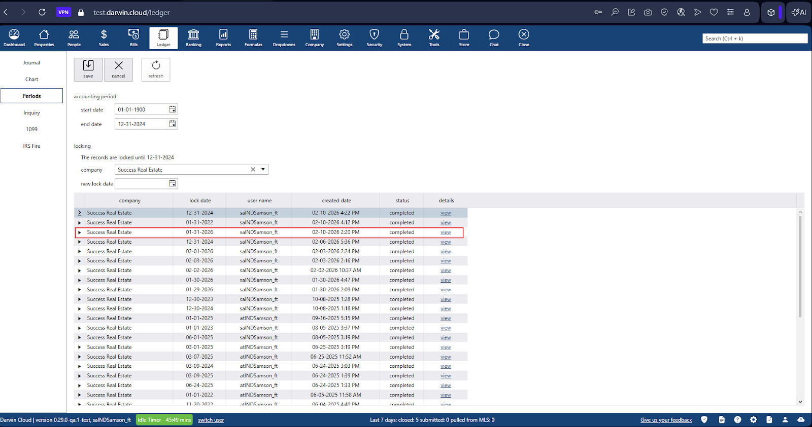 - If the user attempts to change the date in POST to a future or past date, it must be saved with a date after the locked period—in this case, 02/01/2026.