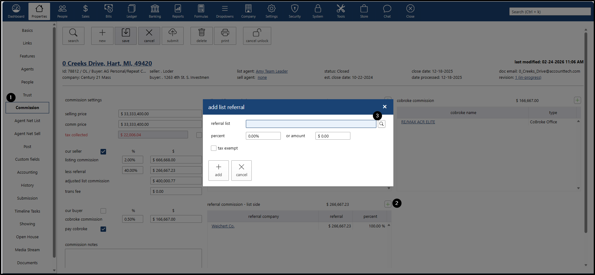 - To add a referral on either the listing or selling side: