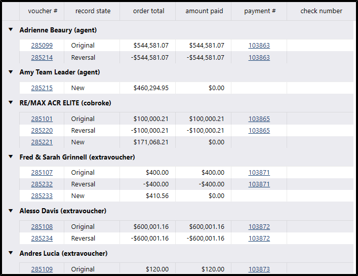 - The system will load all the vouchers created, grouped by person and by revision