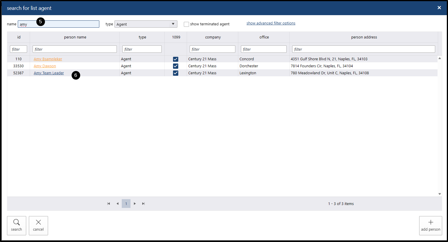 Click on the agent’s record.