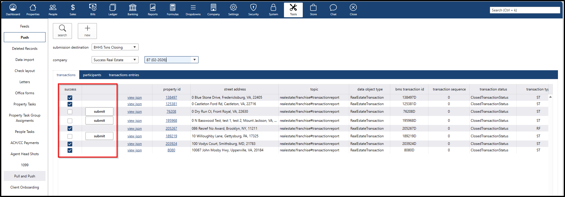 - Select the submission destination to BHHS Txns Closing